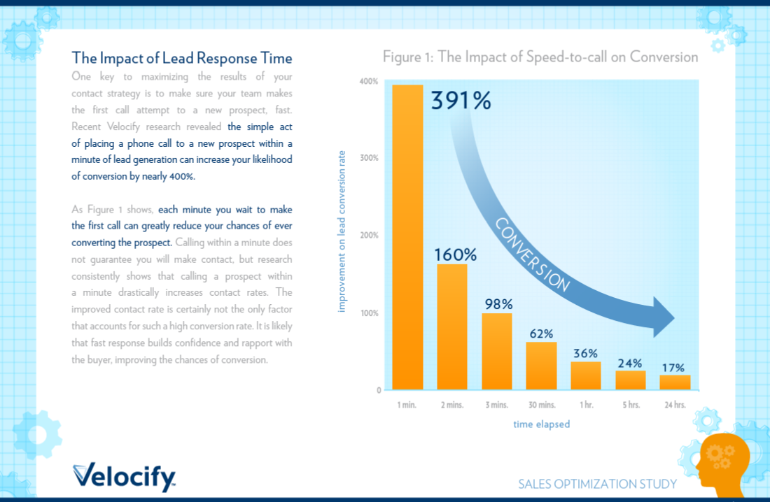 Velocify analyzed 3.5 million leads and found this: responding within 1–5 minutes increases your chance of converting a lead by over 391%. Wait 24 hours, and that opportunity is gone.